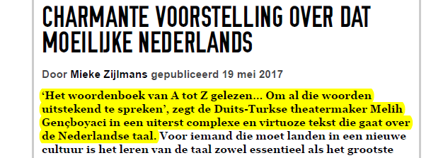 “Als nieuwkomer probeer ik in jouw taal mijn wereld te ordenen. Woord voor woord. Betekenis voor Betekenis. Ontmoeting voor Ontmoeting. Laat ons samen verlegen en ferm de ‘gemeenschappelijke taalzone’ instappen, zodat we elkaars woorden gaan proeven en de lust van het vocabulaire ontdekken“
